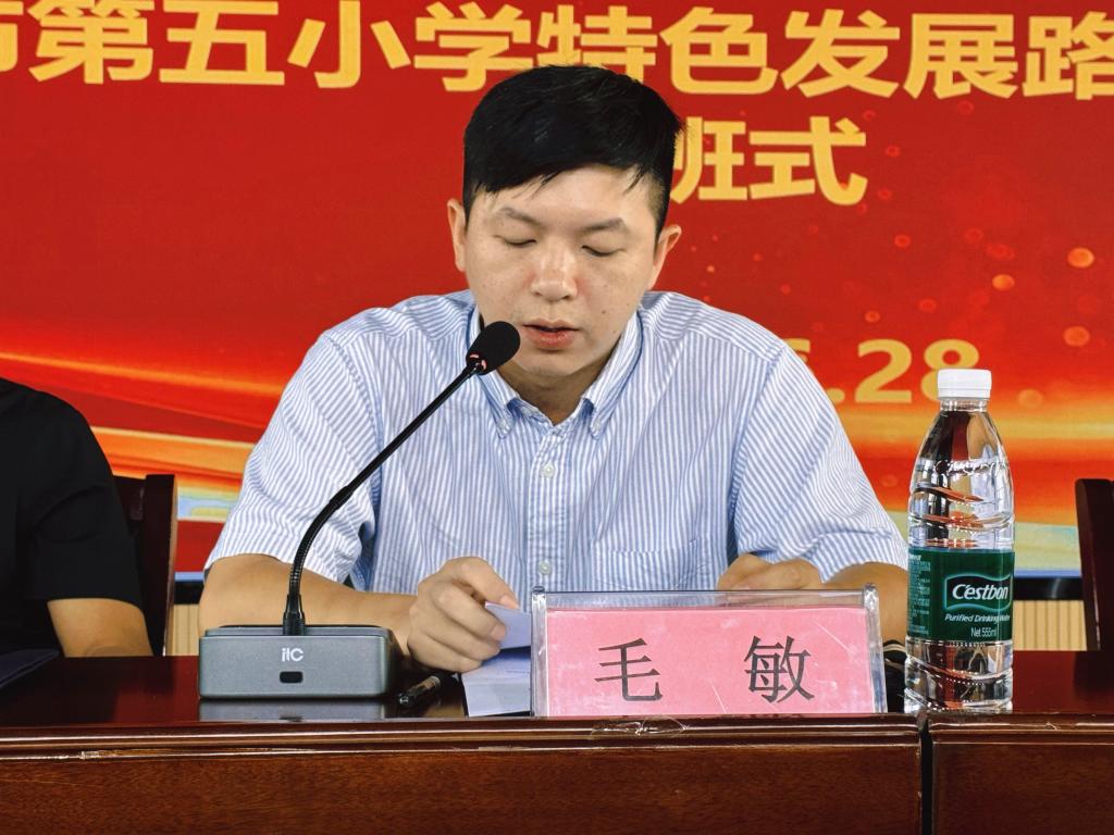 为深化新时代教师队伍建设改革,全面提升教师专业素养,2025年6月28日上午,由beat365中文版官网入口承训的“‘国培计划’协同提质自主选学项目——瑞昌市第五小学特色发展路径建构培训项目”启动仪式在瑞昌市第五小学隆重举行。beat365中文版官网入口院长郑祚双,瑞昌市教育局党委书记、局长张勇、分管副局长梁丽,beat365中文版官网入口体育学院副院长毛敏(首席专家),beat365中文版官网入口副院长邓明亮,瑞昌市第五小学党支部书记、校长刘礼峰、瑞昌市教育局相关科室负责人及全体参训教师出席开班式。会议由beat365中文版官网入口副院长邓明亮主持。
