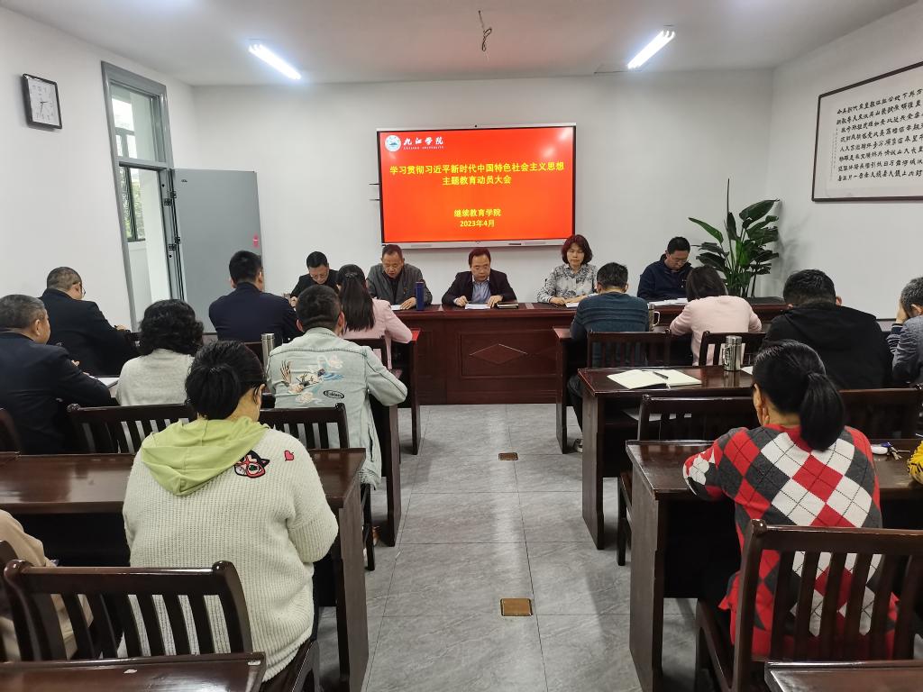 郑祚双传达了学校学习贯彻习近平新时代中国特色社会主义思想主题教育动员部署会主要精神。他要求全体教职工要认真学习领会习近平总书记在学习贯彻习近平新时代中国特色社会主义思想主题教育工作会议上的讲话精神,充分认识开展主题教育的重要意义,把开展主题教育与学院业务工作结合起来,推动学院继续教育取得新发展、迈上新台阶。