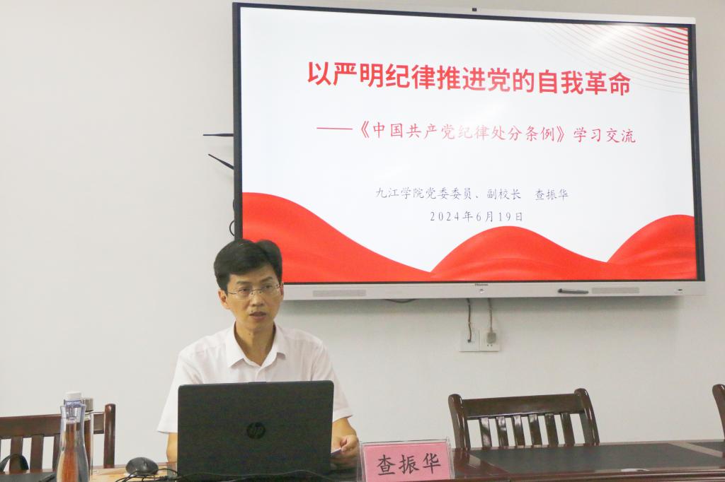 6月19日,校党委委员、副校长查振华在beat365中文版官网入口三楼会议室作党纪学习教育专题辅导讲座。招生和就业处教工党支部和beat365中文版官网入口教工党支部全体党员参加学习。