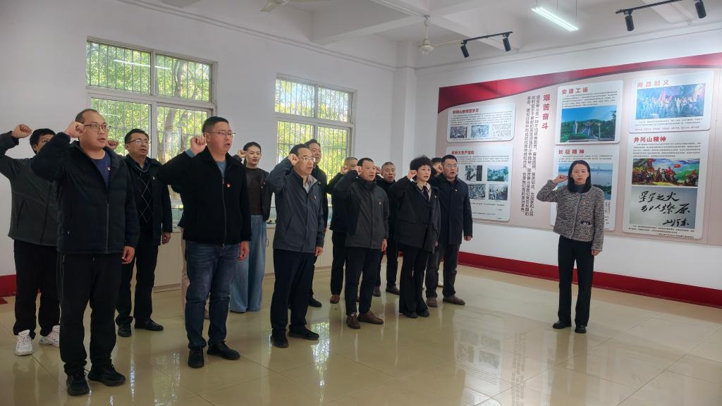 学校廉洁文化教育基地分为党的纪律建设历程、十八大以来全面从严治党成就、十九大以来全面从严治党工作、廉洁文化警示区、红色文化传播区、党员宣誓区六大展区,展厅以“廉洁守正 立德树人”为核心主题,采用图片、实物、案例等形式呈现党的纪律建设历史和典型案例。在基地讲解员的引导下,全体人员依次参观了基地各个展厅。在党员宣誓区,全体党员庄严举起右手,重温了入党誓词。